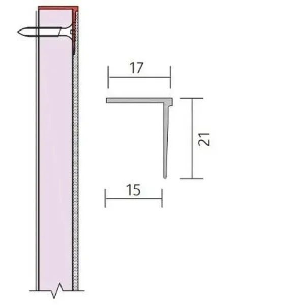Extruded in 3000mm lengths from architectural grade aluminium alloy in accordance with BS 1474. The plastering fin has already been pre-punched with holes and diagonal fastening grooves that work with drywall screws.