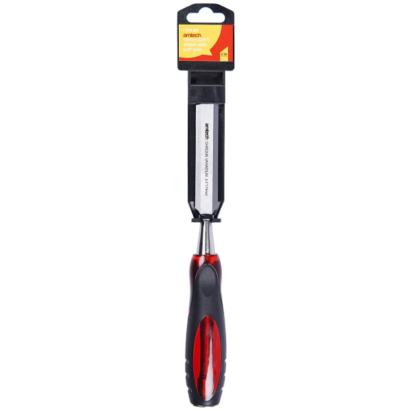 SKU#: 5032759035366This 19mm (3/4″) bevel edge wood chisel has a hardened and tempered chrome vanadium steel blade for durability. With a soft grip handle for comfort, it has a bevel edge pattern and a tough metal striking cap.