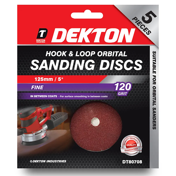 DEKTON 5PC HOOK AND LOOP ORBITAL SANDING DISCS 125MM/FINE – 120 GRIT