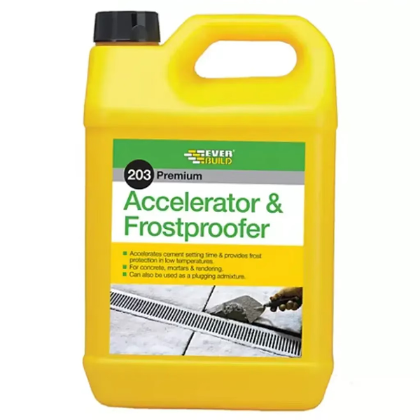 SKU#: ACC5LEverbuild 203 Accelerator & Frostproofer is a liquid additive formulated to accelerate setting and hardening times of mortar, concretes, screeds and rendering to provide frost protection during the setting period.