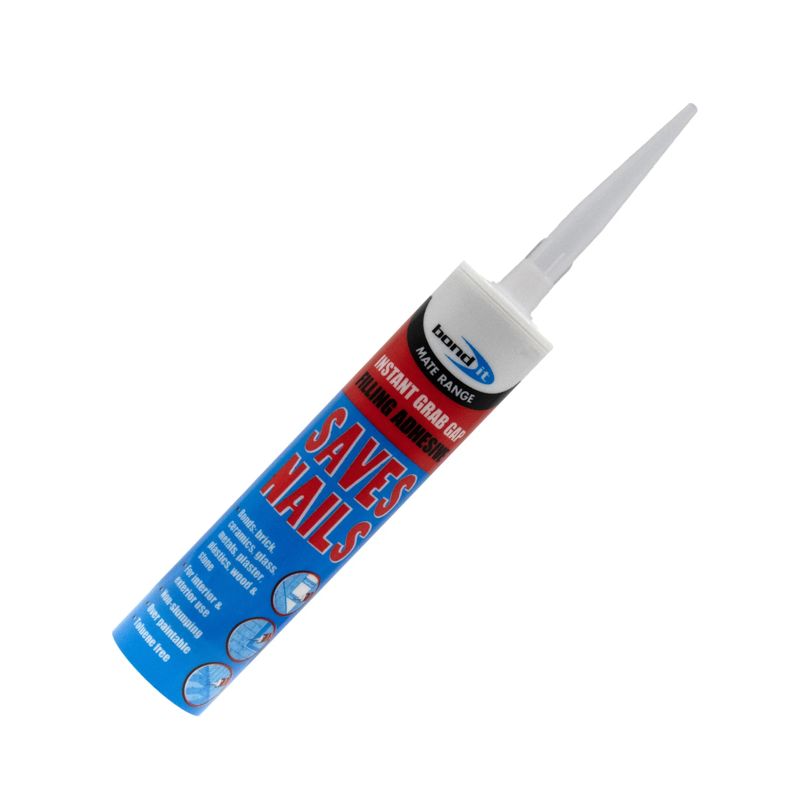 Saves Nails rubber-based adhesive is an alternative to mechanical fixings and is capable of filling gaps of up to 12mm. Used in a wide variety of domestic, commercial and industrial applications, including: wall fixingsfixing skirting board and architravewindow frames and sillscladdingwall battensbrick, stone and concreteceramic, marble and brick veneertimbermetalsome plastics and insulating PU foams